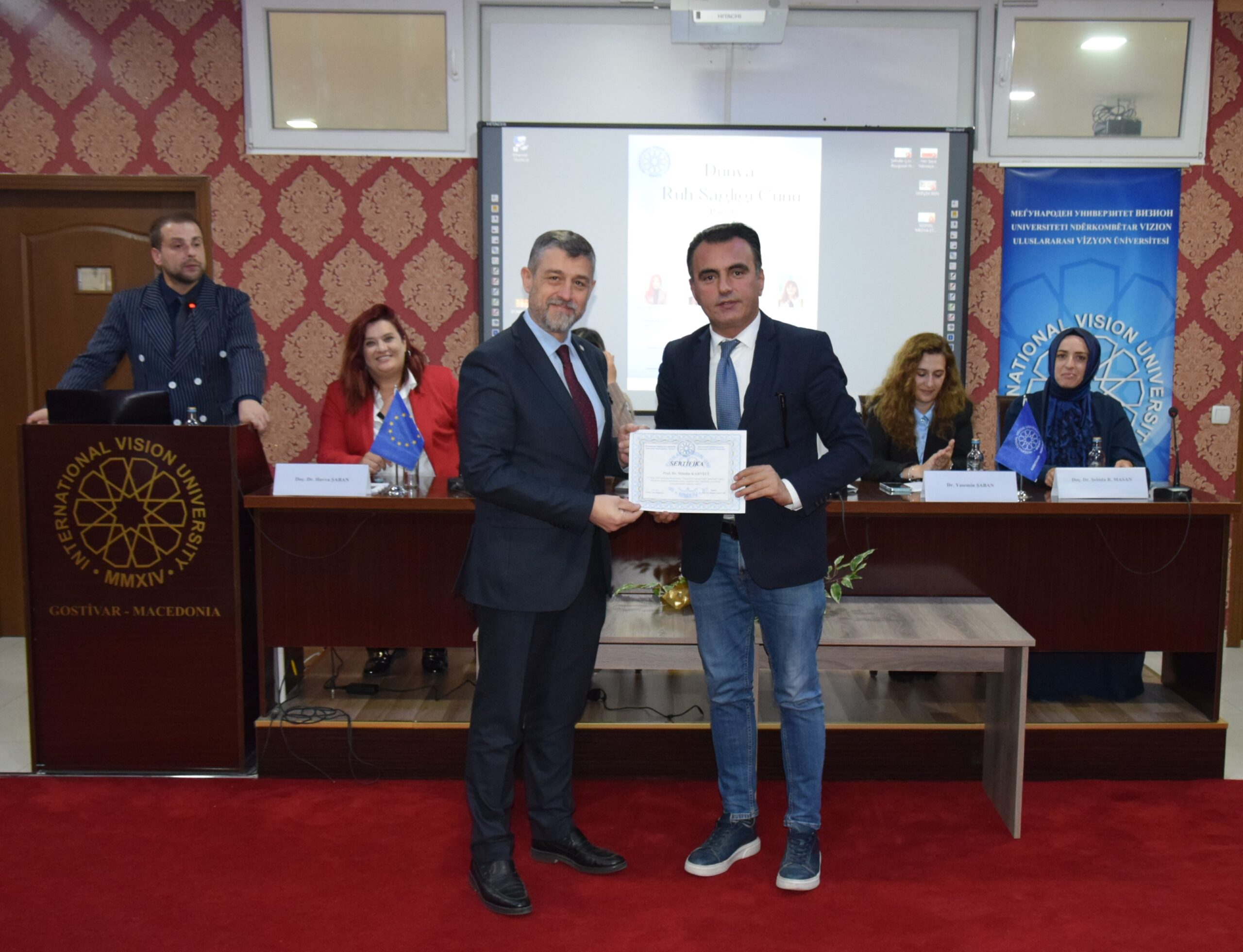 Program, Uluslararası Vizyon Üniversitesi Rektörü Prof. Dr. Ahmet Vecdi Can tarafından panelistlere teşekkür belgelerinin takdim edilmesi ve hatıra fotoğrafı çekimiyle sona erdi. Etkinlik, katılımcıların büyük ilgisi ve etkinliğin ruh sağlığına dair verdiği önemli mesajlarla başarılı bir şekilde tamamlandı.